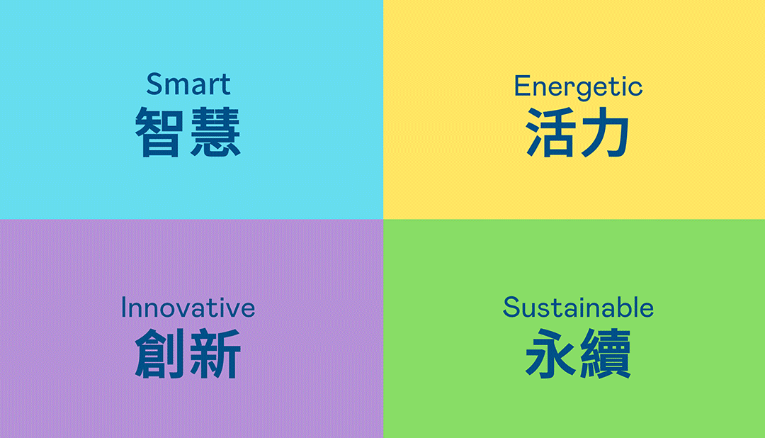 从稳重、信赖的CA88蓝开创新色彩,注入象征智慧蓝、活力黄、创新紫、永续绿的品牌色及动态多变的几何图形,呼应不设限的「Possibilities」精神,代表多元的专业技术及领域,在碰撞中相互触动、融合、延伸,持续激荡出更多新的可能性。